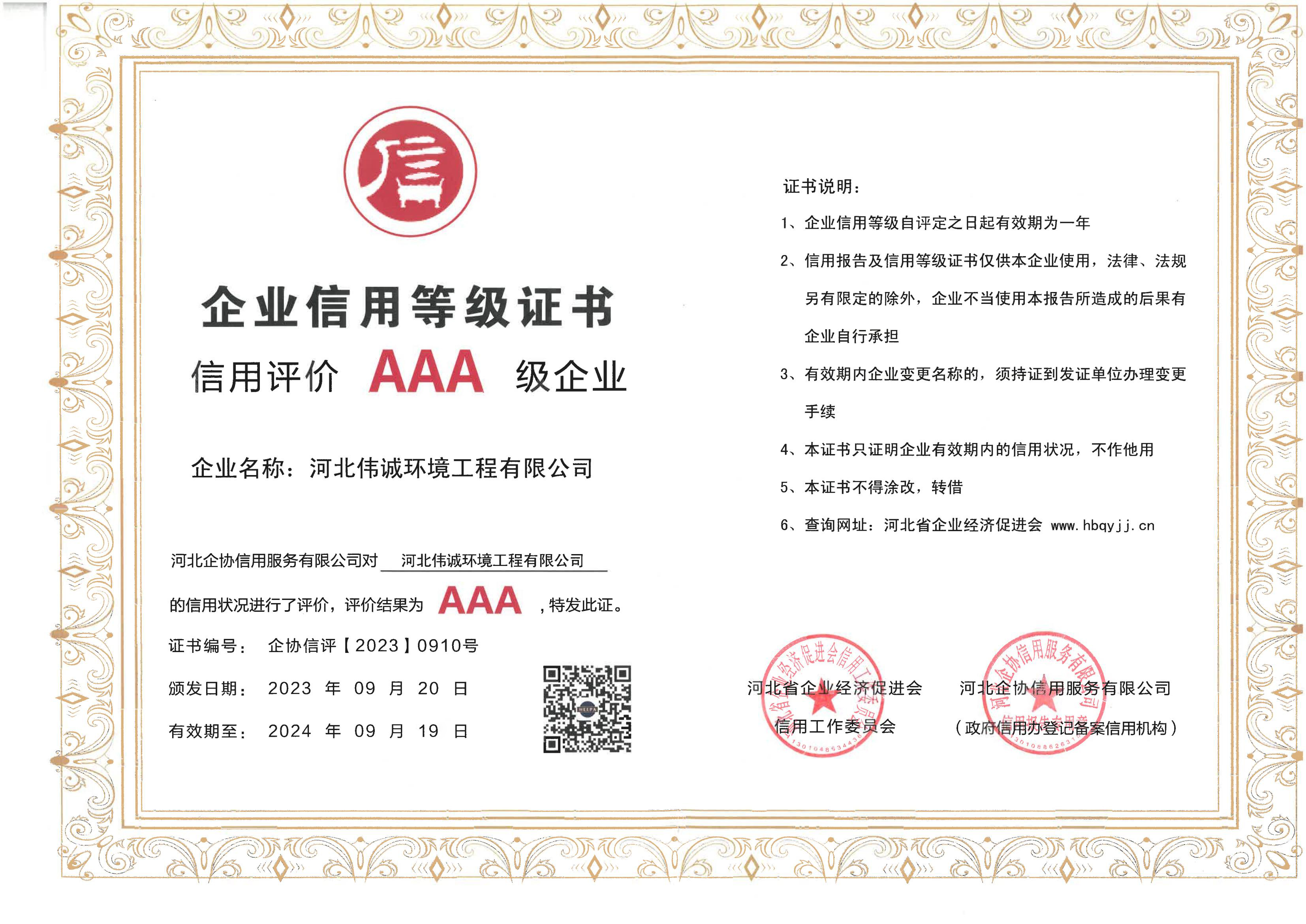 3A级企业信用等级证书 |