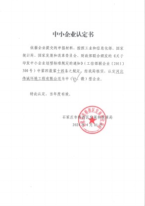 中小企业认定证书 |