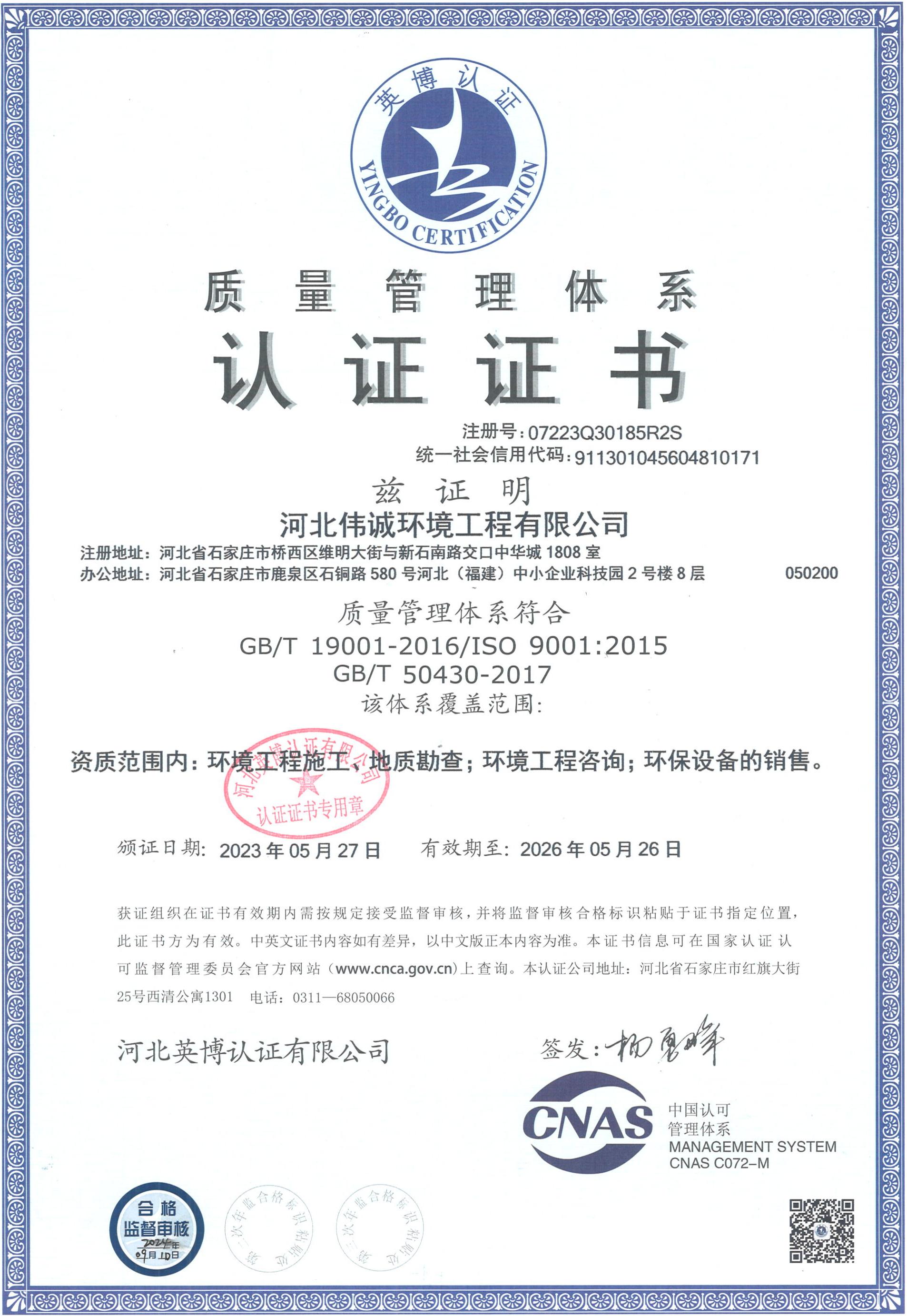 质量管理体系认证证书 |