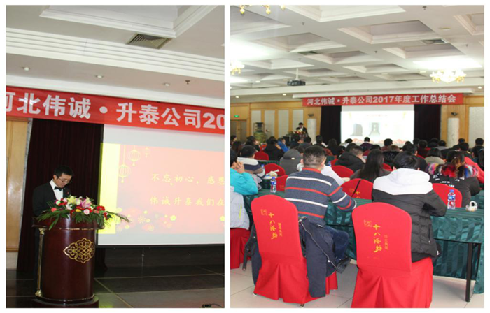 2017年12月29日,阳光明媚,河北伟诚环境工程有限公司、河北升泰环境检测有限公司在河北工会大厦(汇宾大酒店)3楼多功能厅隆重举办了一场《不忘初心 感恩有你 伟诚•升泰我们在一起》的2017年度工作总结会议及联欢晚宴。