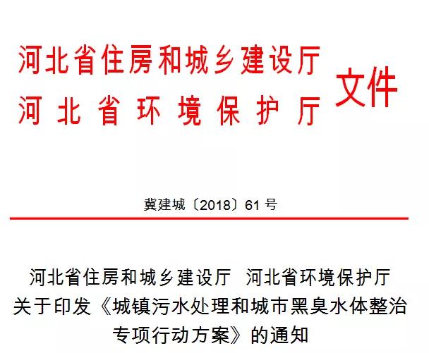 近日,河北省环境保护厅、住房和城乡建设厅等部门联合印发《城镇污水处理和城市黑臭水体整治专项行动方案》。