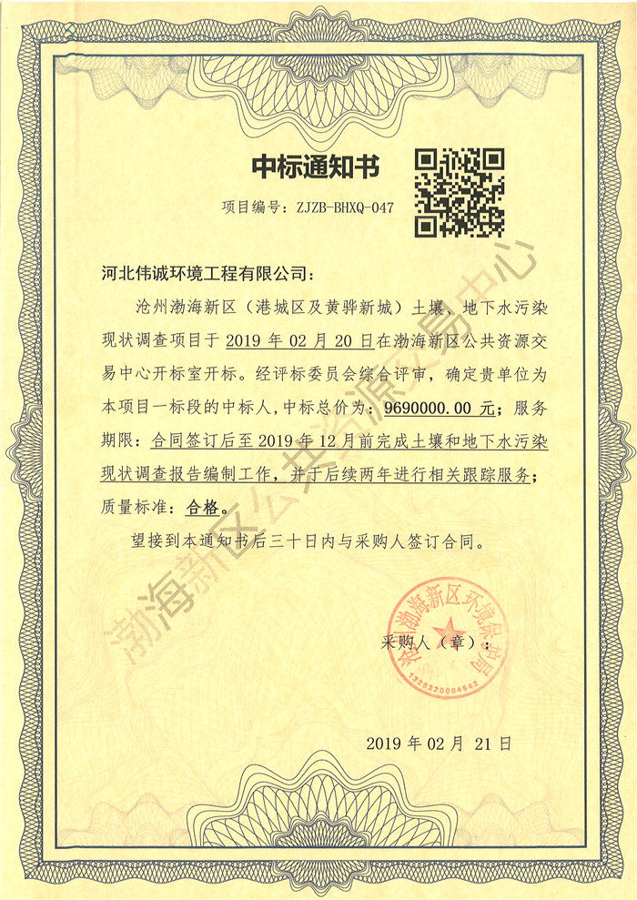 为贯彻落实各级《土壤污染防治行动计划》、《水污染防治行动计划》等相关文件精神,进一步加强渤海新区土壤和水污染防治,沧州渤海新区管理委员会拟对港城区开展土壤和地下水环境调查工作,掌握区域土壤和地下水背景值,构架跟踪监测体系,为后续土地开发利用提供基础数据和决策依据。同时聘请第三方技术支持单位,针对国家、河北省、沧州市及渤海新区对港城区土壤和地下水污染防治不断更新的工作要求,提供技术支持服务和决策参考。