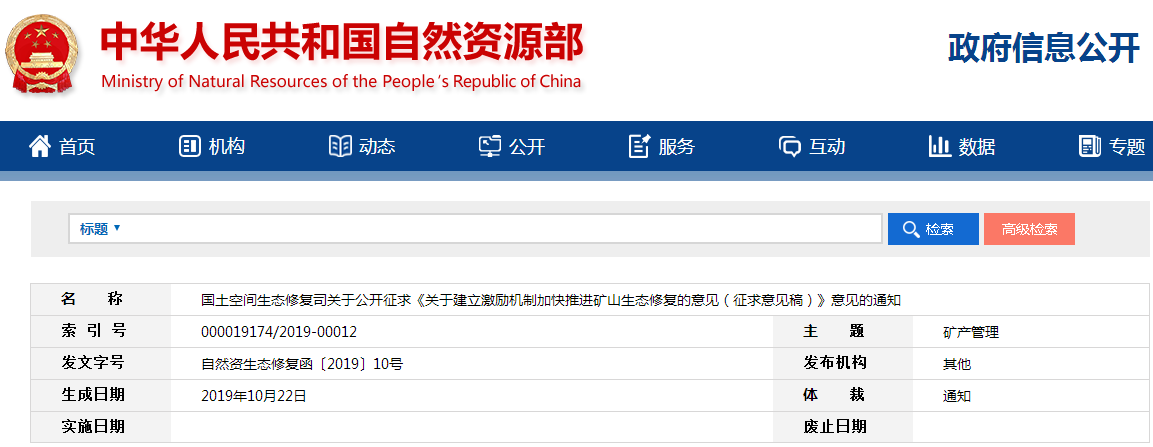 为解决我国矿山生态修复历史欠账多、现实矛盾多,“旧账”未还、“新账”又欠等突出问题,破解资金投入不足瓶颈制约,加快推进矿山生态修复,我们研究起草了《关于建立激励机制加快推进矿山生态修复的意见(征求意见稿)》,现面向社会公开征求意见。